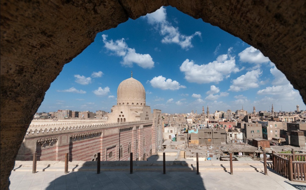 The interior chambers within the towers are equally fascinating. Visitors can climb narrow spiral staircases to reach the top, where Cairo’s skyline unfolds in all directions — a sweeping panorama of mosques, domes, and bustling streets. From here, you can see the nearby Mosque of Sultan al-Mu’ayyad, built directly adjoining the gate, its elegant red-brick walls and grand courtyard complementing the fortress-like structure of Bab Zuweila.