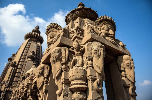 Despite its concrete skeleton, the façade was adorned with carved sandstone, giving it the look and feel of an ancient temple.