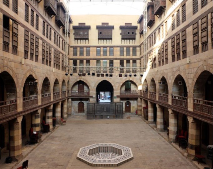 Economía: frente a la mezquita, el khan de Al-Ghuri actuaba como centro comercial, cuyas rentas servían para financiar el mantenimiento del complejo.